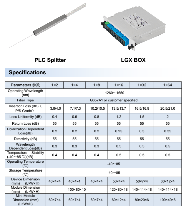 Current Location:Home >> Products >> PLC Splitters >> 1xN PLC Splitter