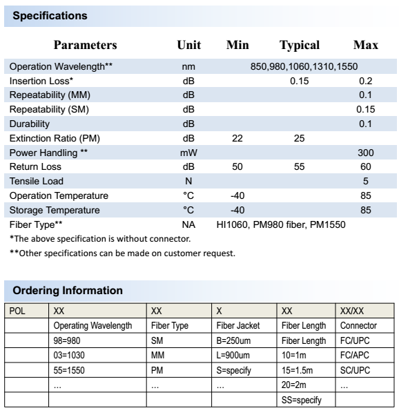 描述 The PHX’s fiber optical patch cord have types of LC, FC, SC, ST, MU, MPO/MTP, MTRJ, SMA, E2000 and so on. It is mainly used in Fiber Optical Communication Systems, such as CATV, LANs, telecommunications networks, Gigbit applications, ATM Ethernet and other fiber optical instruments or optical measurement systems. Non-standard product can be customized.