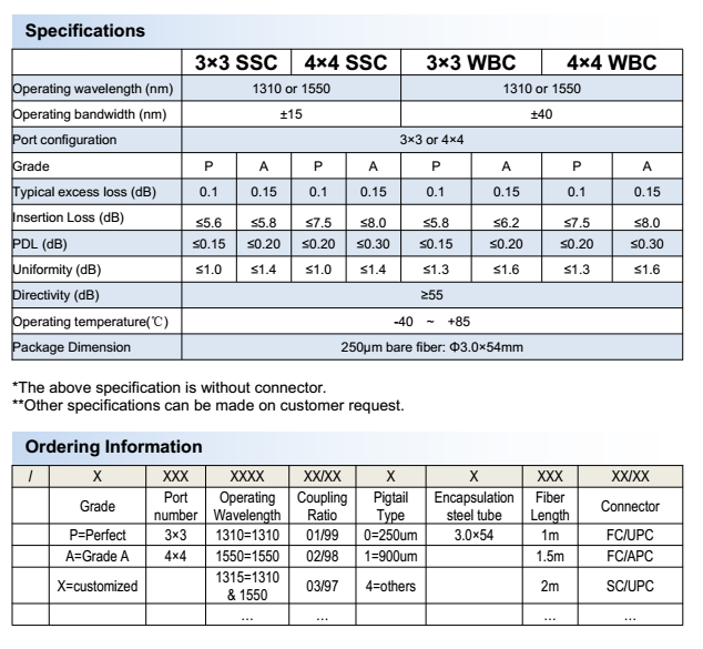 3x3 一次性融拉耦合器具有尺寸小,损耗低,高可靠性的特点。这款产品用在光模块,光传感和光纤测试设备里!